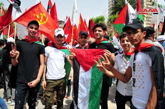 إن الوفاء لتضحيات الشيوعيين السوريين على امتداد قرن من الزمن، والاستمرار بثبات على الأسس العلمية الماركسية لإكمال مسيرة النضال الوطني والطبقي لحزبكم، تشكلان الرد الثوري على كافة التحديات الكبيرة الراهنة، التي تمر بها سورية وفلسطين ولبنان وكل المنطقة العربية، وهي مهمات تحمّلكم المزيد من المسؤوليات التاريخية التي تضطلعون بها، للنضال من أجل تعزيز موقع سورية الوطني ودوركم الثوري في بناء الدولة الوطنية الديمقراطية العربية والموحدة، وفي حمل قضايا التحرر الوطني وفلسطين في المقدمة منها، وفي تعزيز وترسيخ العمل اليساري المشترك من خلال النهوض بحركة تحرر وطني عربية ثورية.